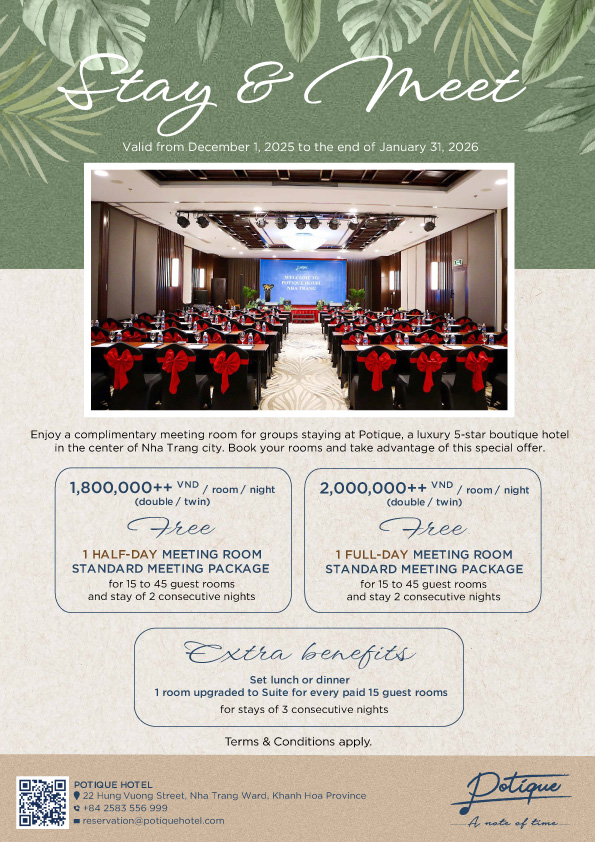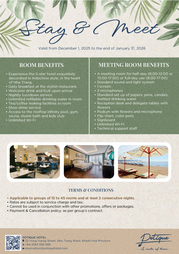 Should you need further information, please dial +84 258 3556 999 or send an email to reservation@potiquehotel.com